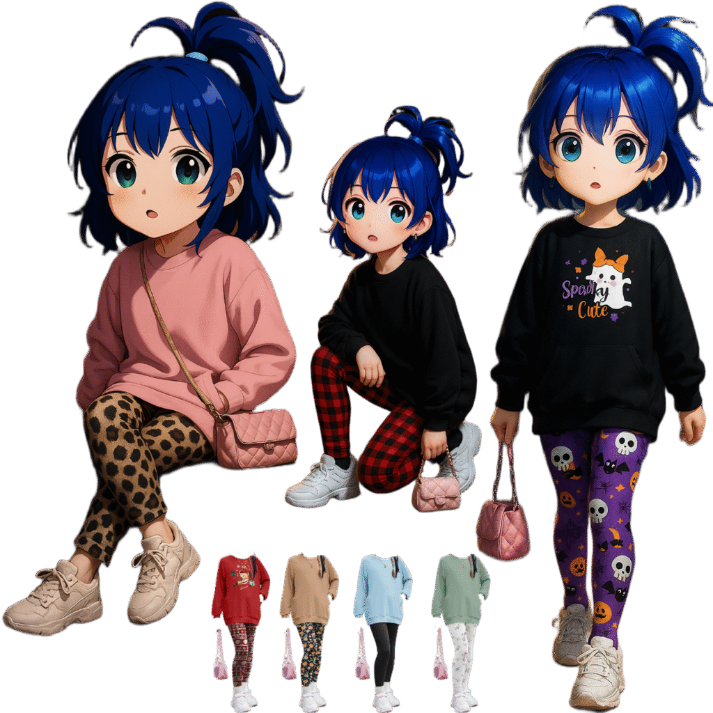 Cool Weather Look: Layer with a cardigan, denim jacket, or lightweight coat. Boots or closed shoes complete the outfit. As a result, your child can stay warm while still looking stylish.